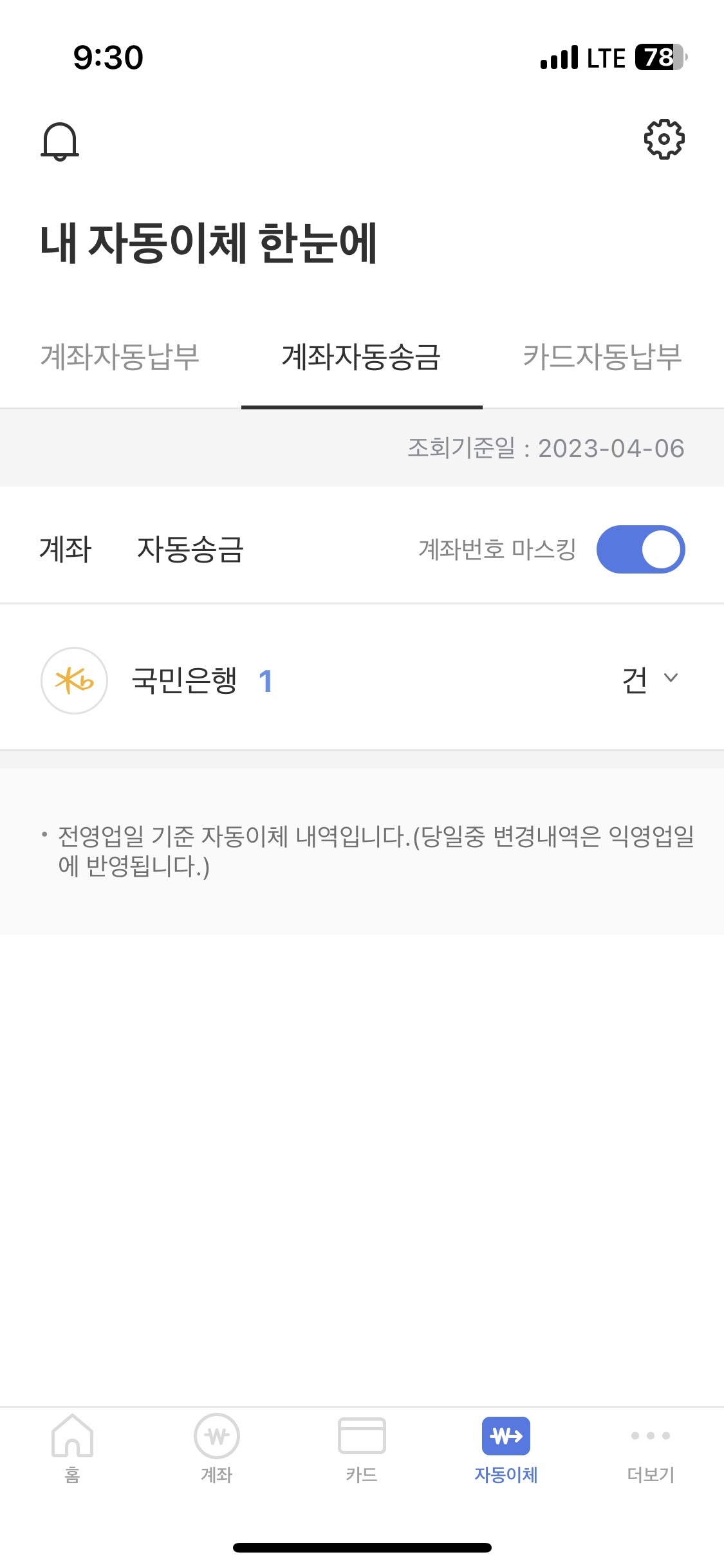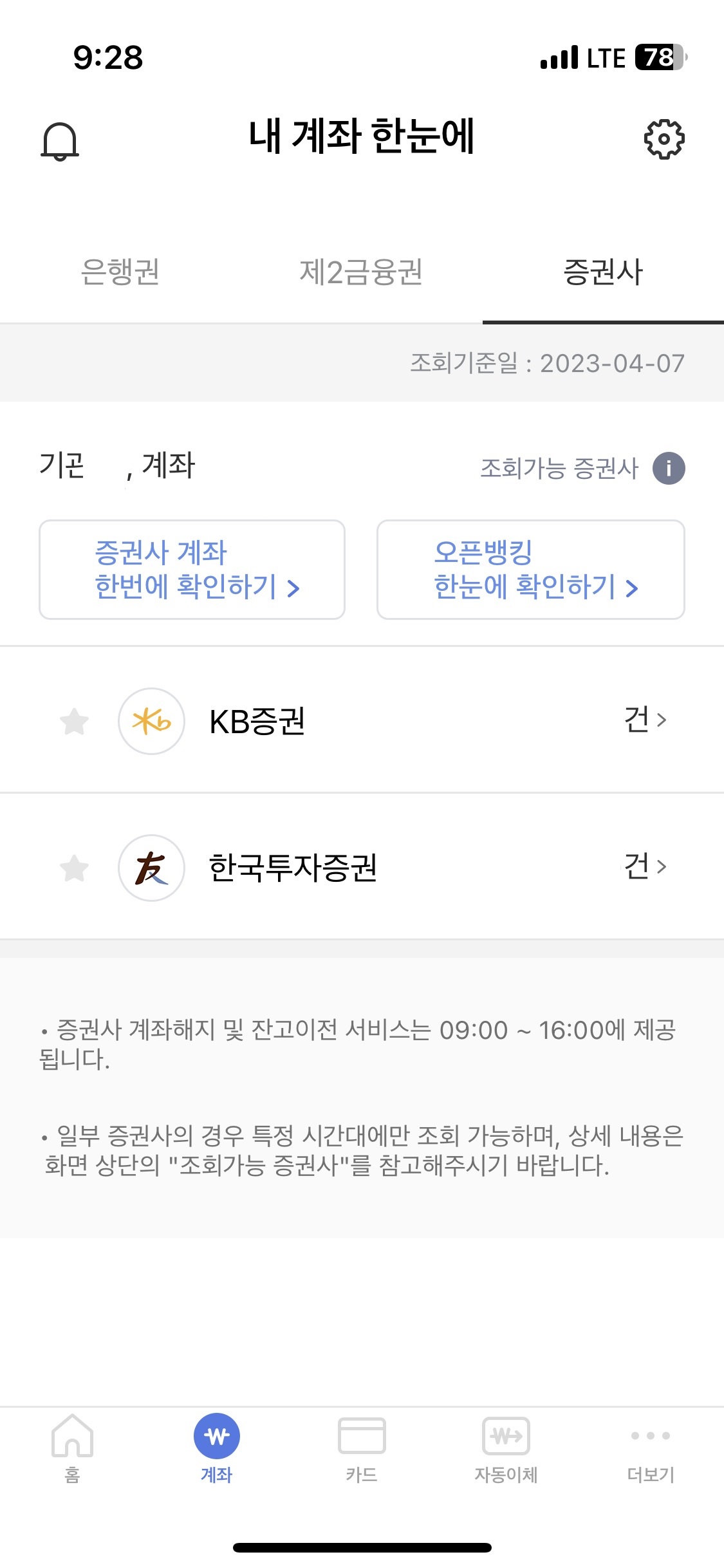 휴면예금 및 보험금 조회 , 대출내역조회 , 자동이체관리 , 자동송금 관리, 제2금융권계좌관리, 증권계좌관리, 계좌통합관리서비스