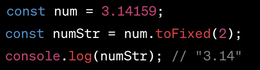toFixed()는 숫자를 문자열로 반환하며, 소수점 이하 자릿수를 지정할 수 있습니다.