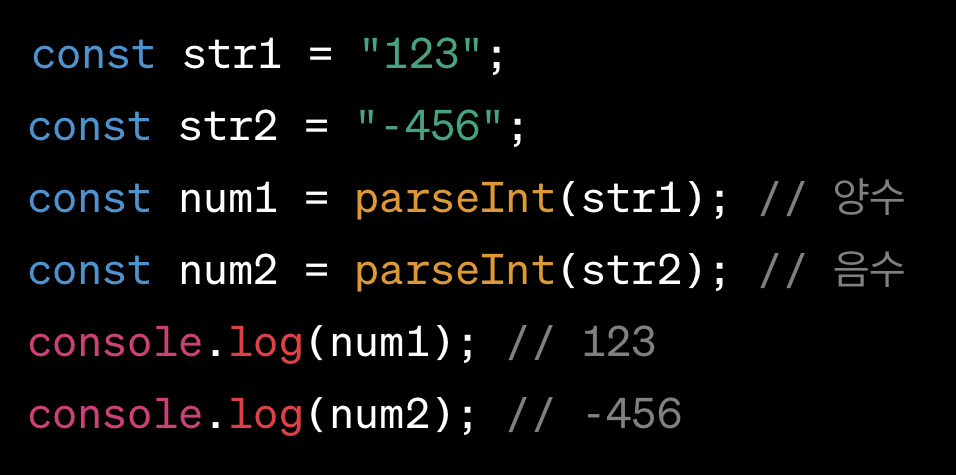 parseInt() 함수를 사용하여 문자열을 정수형으로 변환할 수 있다.