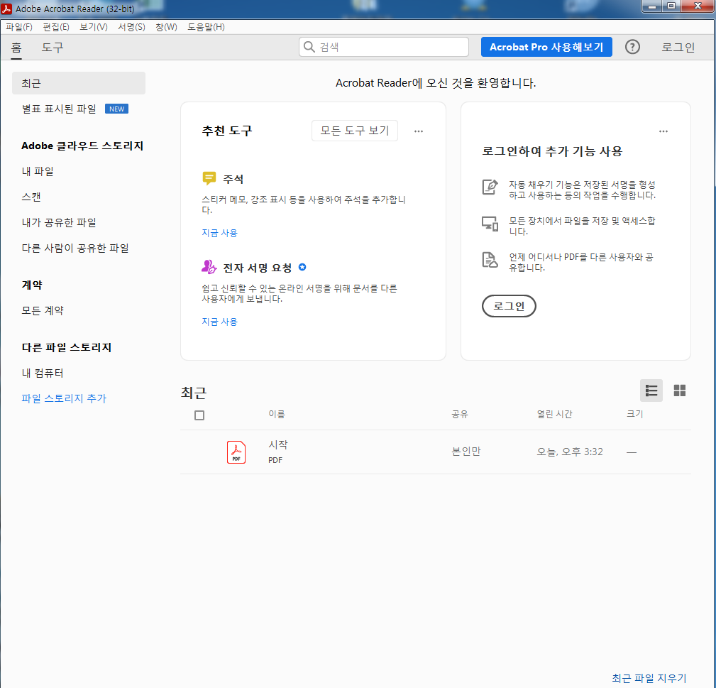 어도비 리더 다운로드 (Adobe Acrobat Reader) 한글판