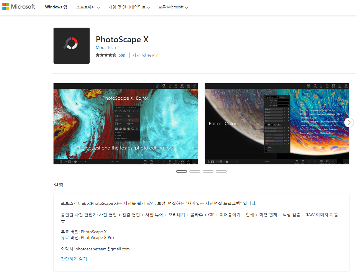포토스케이프 X은 windows 및 Mac에서 사용이 가능하며 무료로 사용이 가능하다. 특히 포토스케이프 X는 사진 편집기라고 보는게 맞을 수 있다.