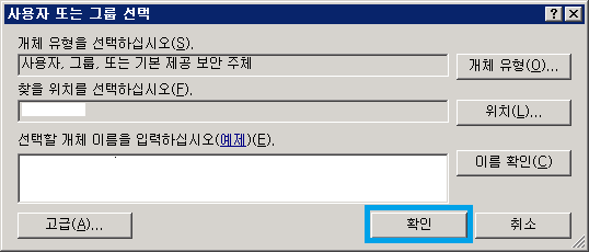 23. FTP 계정으로 사용하려는 아이디가 선택되면 아래 그림과 같이 뜬다. 여기서 확인 버튼을 클릭한다.