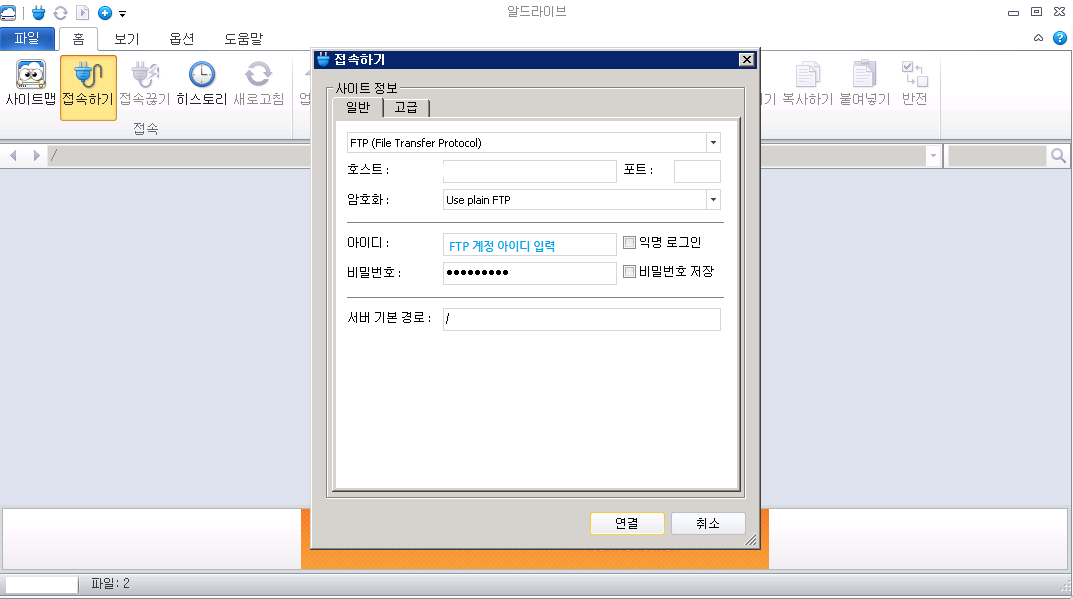 ( ※ 만약 접속이 안된다면... IP주소 또는 도메인 주소 및 암호, 포트번호를 확인하고