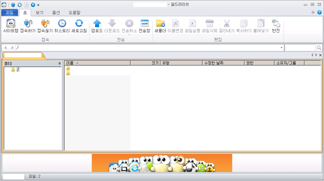 26. FTP가 정상적으로 접속되면 아래와 같이 FTP서버 폴더로 지정된 것이 뜬다.