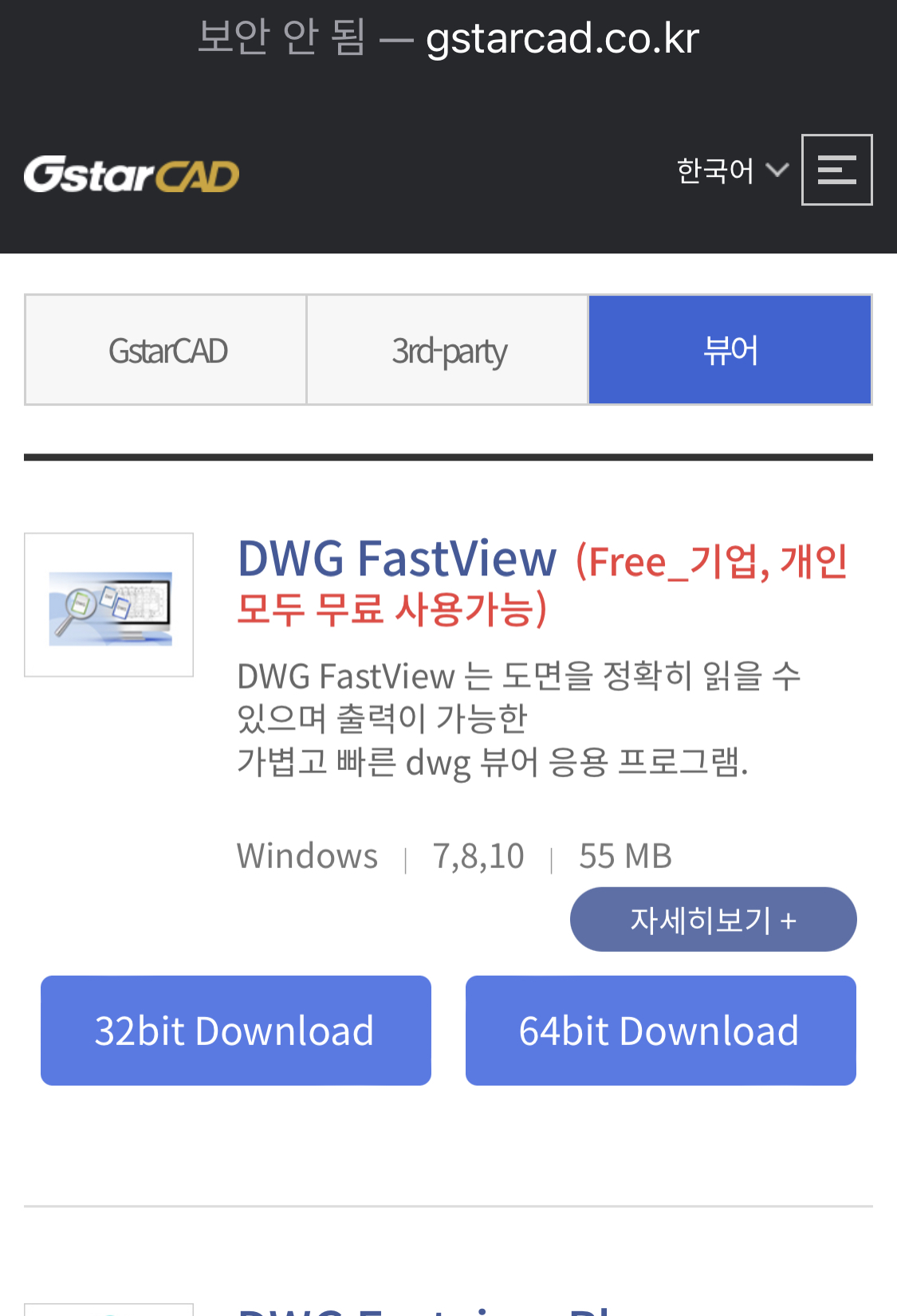 Windows설치용 dwg 트루뷰어는 dwg 및 dxf만 볼수 있다.