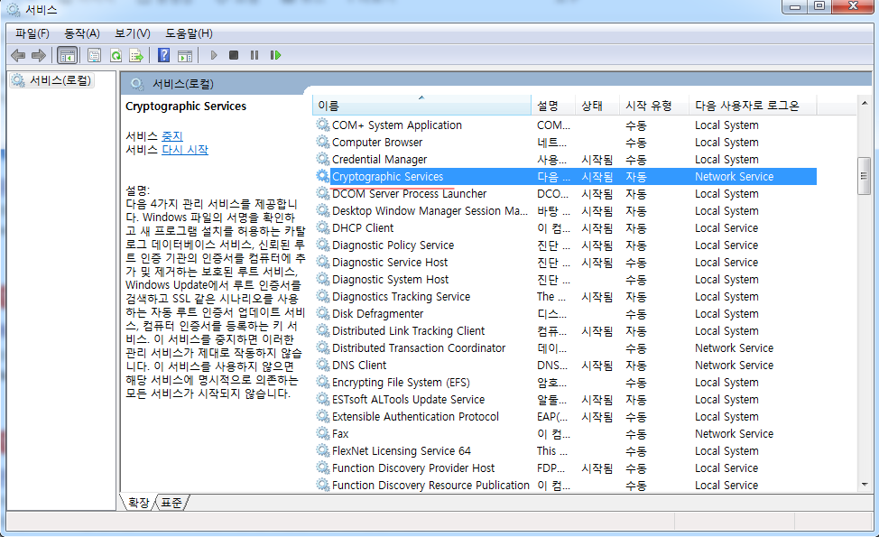 Windows7에서 카카오톡, 알약등... 실행이 안될 때 해결 방법