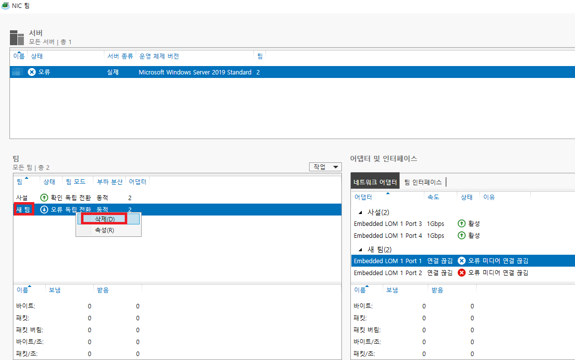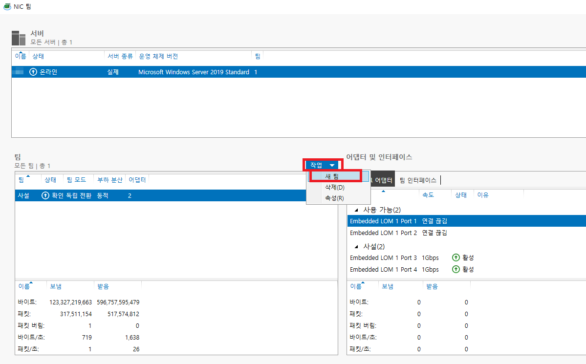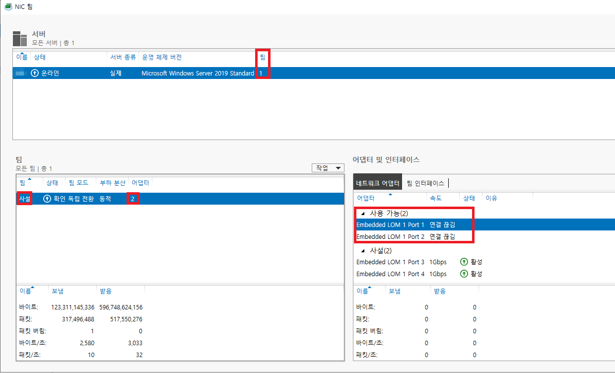 Windows Server 2019 에서 Network Teaming (서버 네트워크 어댑터 로드 발런싱)